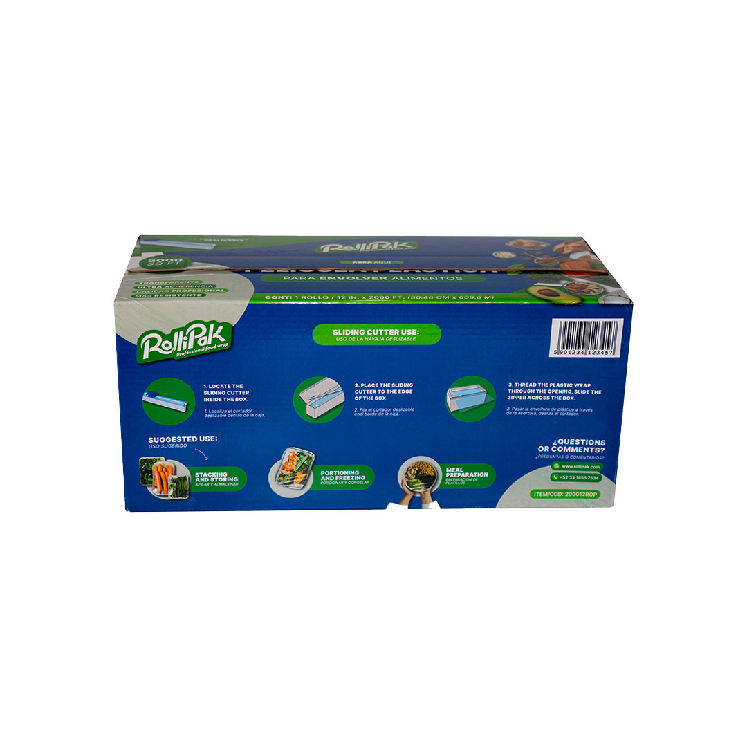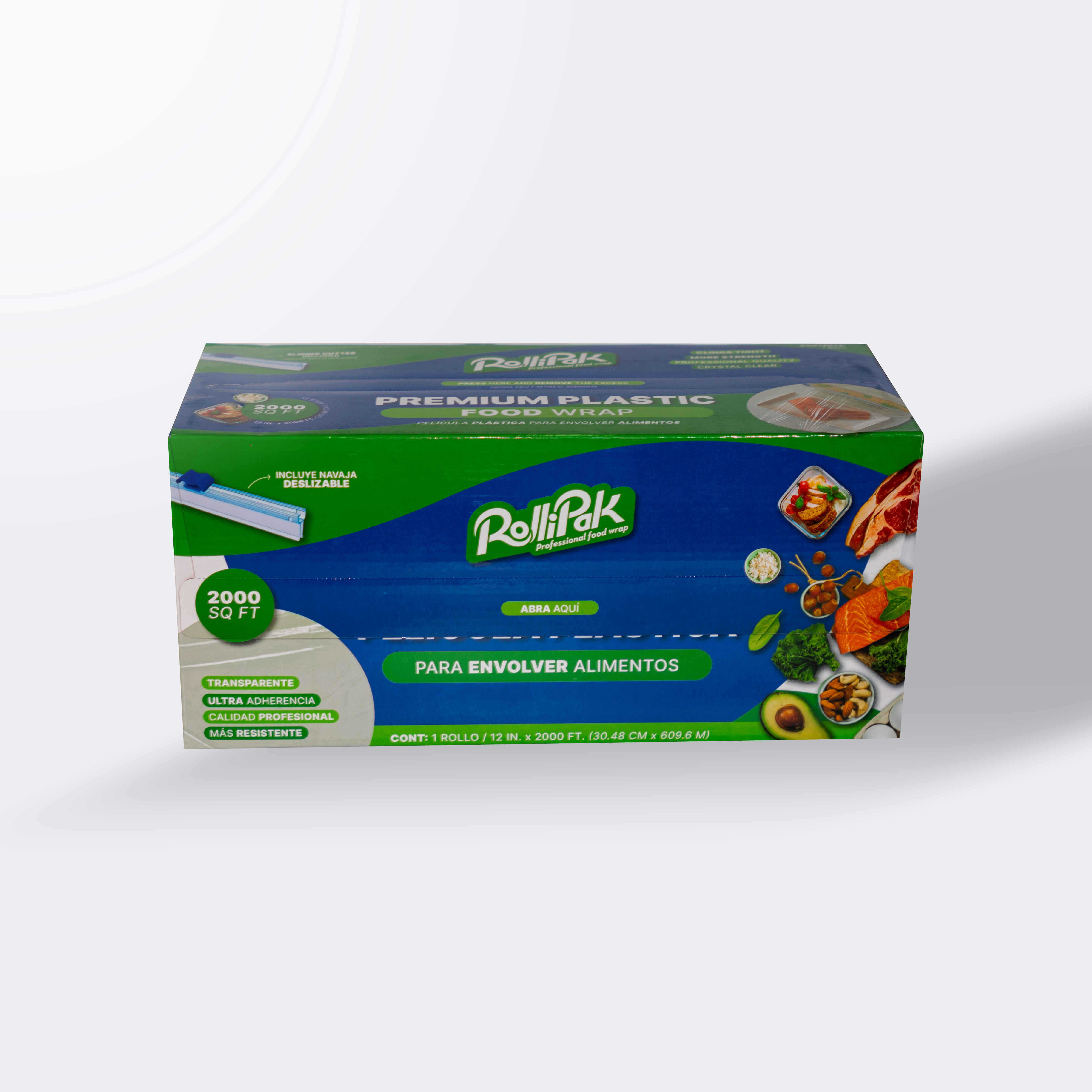 Optimiza la conservación de tus alimentos con el RolliPak Food Service 12″x2000′ ZIPCUTTER. Este innovador vitafilm de grado alimenticio de 30.48 cm de ancho (12 pulgadas) y 11 micras de grosor viene equipado con el práctico sistema ZIPCUTTER, que permite cortes limpios y precisos sin necesidad de tijeras. Con una longitud de 609.6 metros (2000 pies), es perfecto tanto para el uso intensivo en cocinas profesionales y servicios de catering, como para el día a día en el hogar. Su diseño inteligente facilita el empaque y la protección de una amplia variedad de alimentos, manteniendo su frescura, sabor y propiedades. Con RolliPak, la eficiencia y la higiene van de la mano.