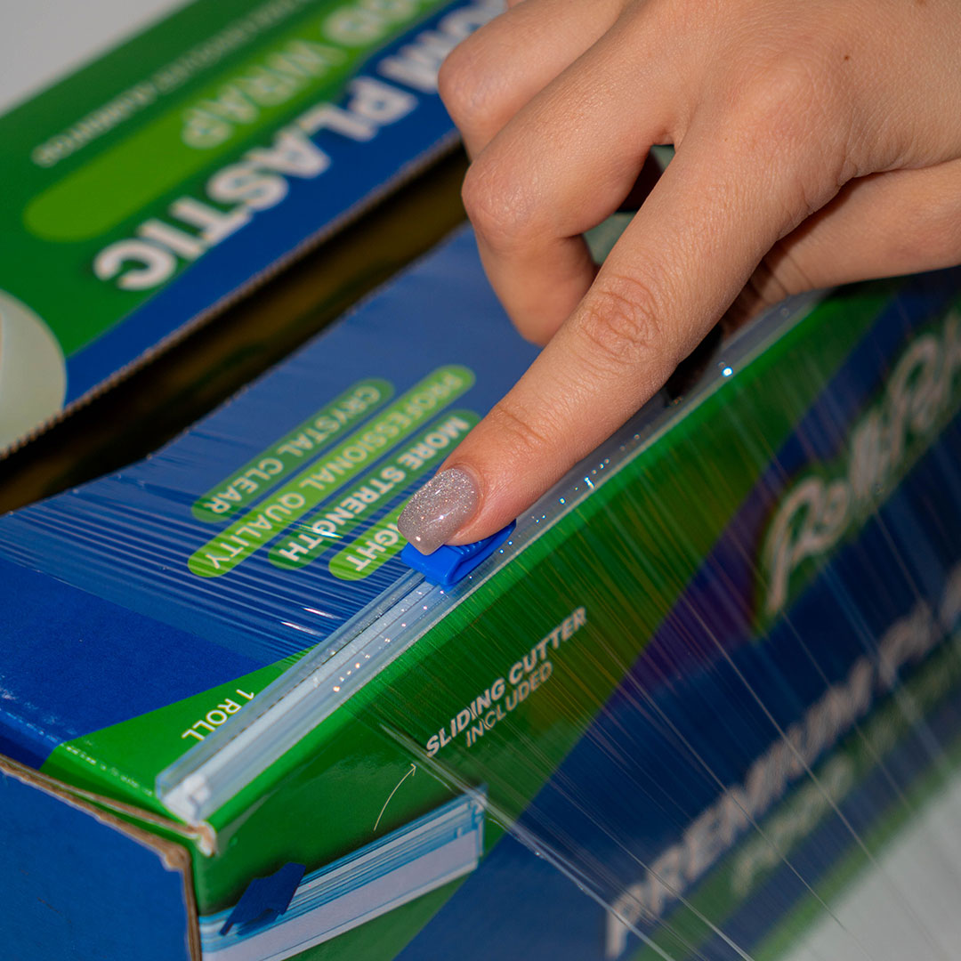 RolliPak Food Service con ZIPCUTTER: un vitafilm de 30.48 cm de ancho con cortador integrado para un uso fácil y eficiente en tu cocina, ideal para la conservación de alimentos.